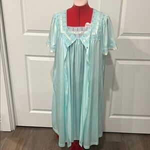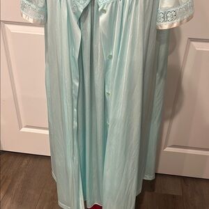 Gilead Vintage Sea Blue Green Lace Trim Nightgown and Robe Set Size Medium