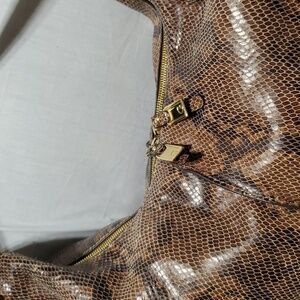 snakeskin print on leather large slouch shoulder bag hobo style with leather tassel great used condition some corner wear interior is mint by Gili