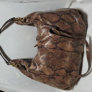 snakeskin print on leather large slouch shoulder bag hobo style with leather tassel great used condition some corner wear interior is mint by Gili
