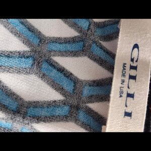 Ranna Gill dress features a geometric pattern in blue, black, and white, a style that aligns with the aesthetic found in Ranna Gill's collections, which often include intricate embroidery and unique patterns.