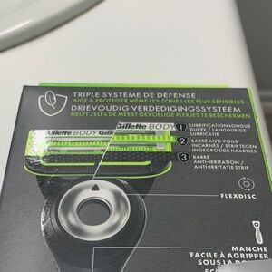 Gillette Labs Body + Intimate razor in green for precise body grooming. Ergonomic handle and flexible head for comfortable control. Designed for close, smooth shaves on sensitive areas. Easy to maneuver for confident results.
