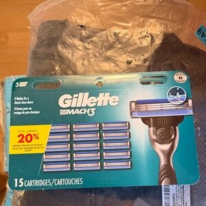 15 Gillette Mach3 razor cartridges. Blue and silver design.