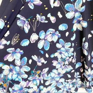 Brand is Gilli which has been sold at Anthropologie and Stitch Fix. Made in the USA. Blue and black floral skirt with elastic waist. Mini/midi depending on how high on your waist you wear it. Amazing condition. Elastic waist. Polyester spandex blend.