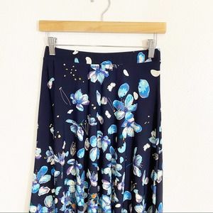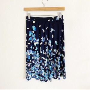 Gilli Blue & Black Floral Midi Skirt Size Small