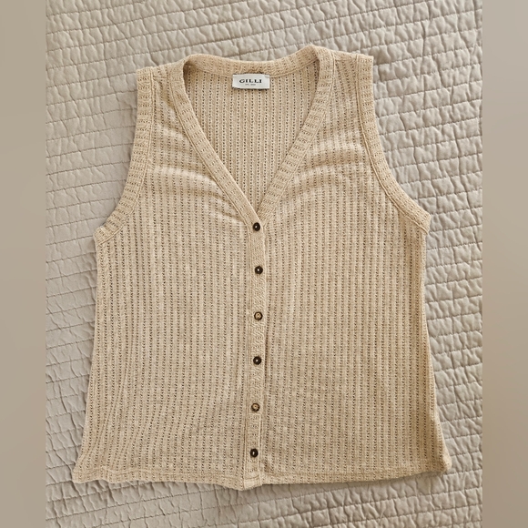 Beige button-up tank in a beige textured knit from Gilli. Like-new condition; worn once.
