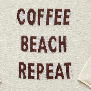 cozy sweater, beach sweater, coffee lover shirt, lightweight knit, casual pullover, slogan sweater, graphic knit top, lounge sweater, weekend outfit, fall beachwear, neutral sweater, vacation style, comfy chic