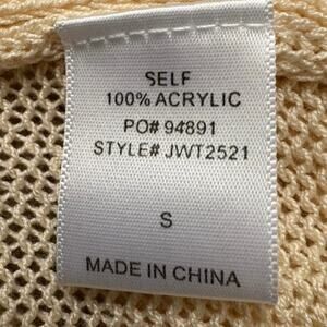 Cozy and lightweight knit sweater by Gilli, featuring a fun graphic text design that reads “COFFEE BEACH REPEAT” in bold lettering. Perfect casual pullover for beach days, coffee runs, or layering year-round. Soft open-knit acrylic fabric with a relaxed fit. There is a small manufacturer flaw on the back (see pic).