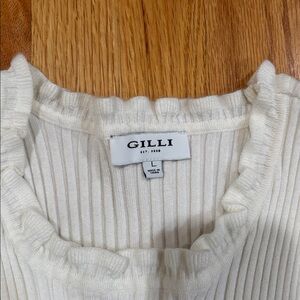Gilli Cream Ribbed Ruffle Trim Top