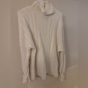 Cozy ribbed sweater with a turtleneck. Soft texture and relaxed fit. Perfect for layering.