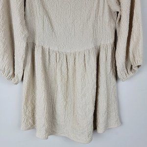 Gilli Cream Stretchy Textured Scoop Neck Puff Sleeves Pleated Relaxed Top Size S