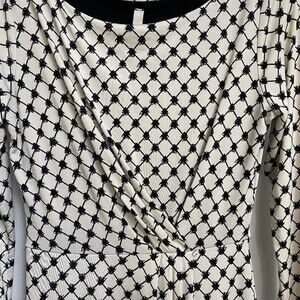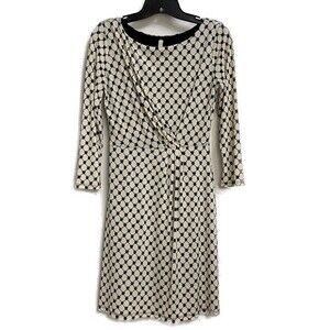 Gilli Diamond Pattern Midi Dress Size S Off-White Black Lined Office Neutral
