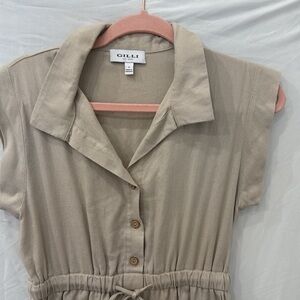 Gilli Dress Small khaki shirt dress with tie waist and pockets