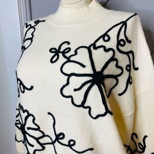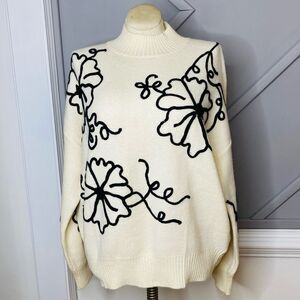 Embrace cozy-chic style with the Feel Good Stuff Mock Neck Sweater by Gilli. This natural-colored sweater features long sleeves and a mock neckline, adorned with contrasting floral embroidery. Crafted from a blend of 74% Acrylic, 22% Polyester, and 4% Spandex, this pull-on sweater provides extra warmth without the bulk. Designed for easy styling, it's perfect for pairing with both jeans and skirts, making it a versatile wardrobe essential.