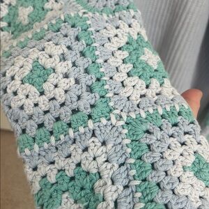 Gilli Granny Square Crochet sleeve Oversized Boxy Pullover Sweater Blue NEW