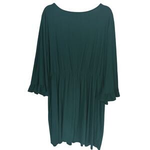 Gilli Green Ribbed Blouson Dress 3X V-Neck Long Ruffle Sleeve Holiday Christmas