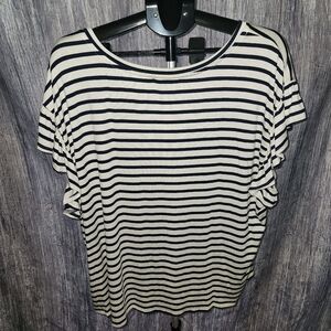 Gilli NWT White Navy Stripe Flutter Sleeve Top Made in USA Size 3X