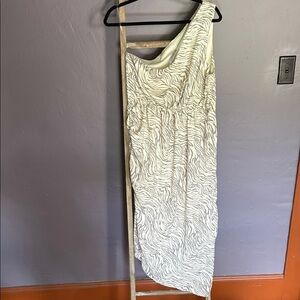 This stunning one-shoulder dress from Gilli features a modern zebra print on a creamy background. The draped ruching detail adds a flattering touch while the fitted silhouette makes it perfect for a night out or summer event.