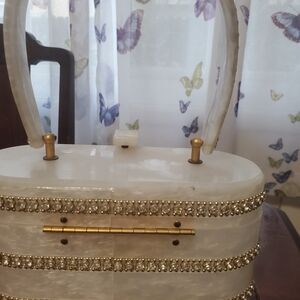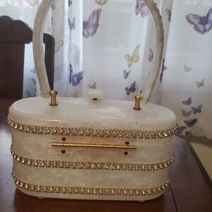 Gilli Original lucite and rhinestone purse. This chic white clutch is adorned with stunning rhinestone accents, perfect for elevating your style.
