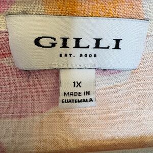 Add a pop of color to your wardrobe with this fun and flattering Gilli plus-size romper in a bold floral print of pink, red, and orange hues. Designed in a lightweight fabric with a comfortable drawstring waist, this romper is fully lined for confidence and ease. The collared neckline, button front, and flutter cap sleeves give it a polished yet playful look.