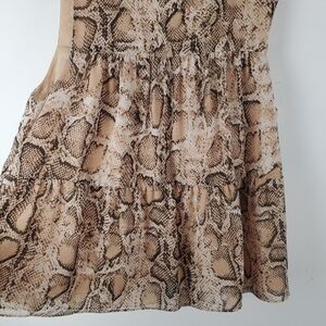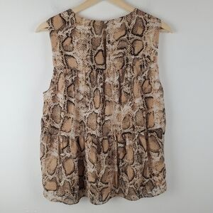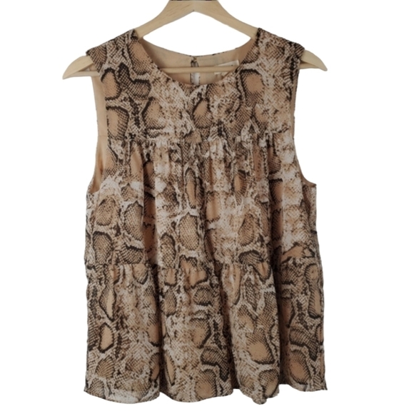 Gilli Shirt Medium Sleeveless Tiered Blouse Brown Tan Snakeprint Keyhole back