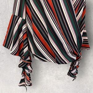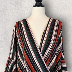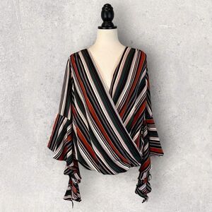 Gilli Striped V-Neck Wrap Blouse Long Flared Bell Sleeve, Size M