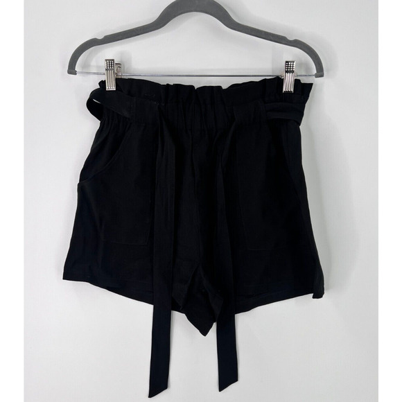 Gilli Tie Waist Paperbag Shorts W/ Pockets Black Women's Size Small