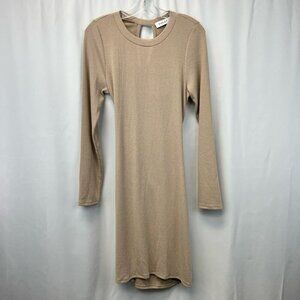 Gilli Womens Bodycon Dress Beige Cut Out Back W/ Twist Round Neck Long Sleeve L