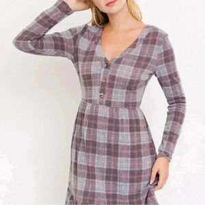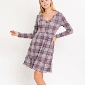 Gilli Women’s Checked Long Sleeve Casual Cozy Relaxed Fit Dark Academia Dress 1X