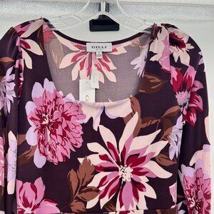 Gilli Women's Long Sleeve Floral A-Line Midi Dress Size Medium New