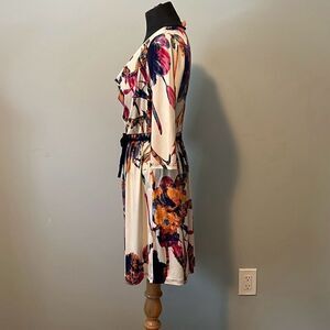 Gilli Women's Multicolor Floral 3/4 Sleeve Knee Length Cowl Neck Dress Large NWT