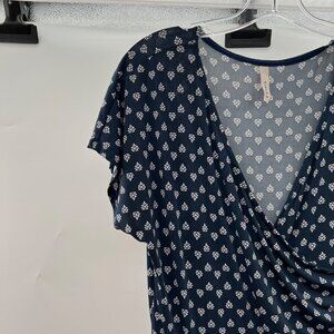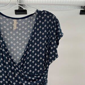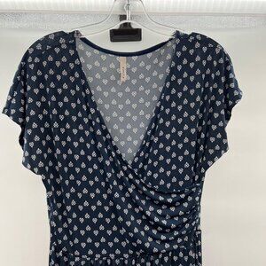 Gilli Women's Short Sleeve Surplice Pant Jumpsuit Navy/White Size Small