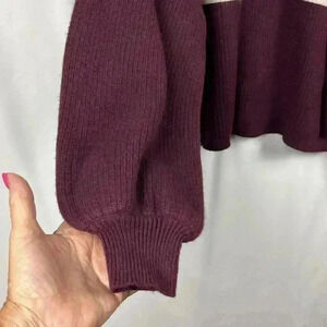 Gilli Womens Sweater Maroon & Cream 1X OS Chunky Old School Balloon Sleeves w/Cuff Mock Turtleneck Cool Casual Classic