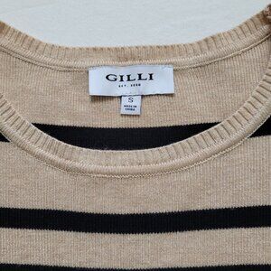 Gilli Womens Tan & Black Striped Long Sleeve Crewneck Sweater Size Small