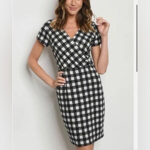 Gilli gingham black and white stretchy wrap checkered dress size small