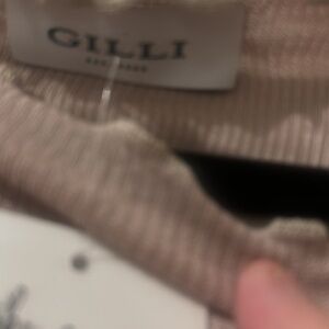 Gilli size medium taupe/pink short sleeve ruffled edge top NWT