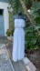 Simple jumpsuit with elastic at the bust and the waist. That elastic stretch is easily to 20 inches. The jumpsuit is a rayon fabric with a raw edge trim. It is fully lined in an excellent condition.