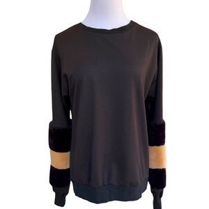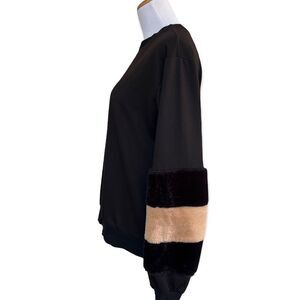 Gilli Black Tan Fur Stripe Balloon Sleeve Oversized Slouchy Sweatshirt Top Small