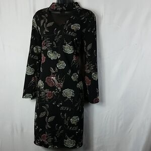 Gilli Choker Black Vintage Floral Cut Out Flare Sleeve Mini Dress Size Medium
