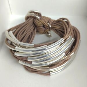 Gillian Julius Handcrafted Sterling Silver Tube Bracelet in Taupe.