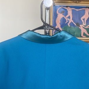 Incredible and show-stopping Vintage Piece! Beautiful bold blue with silk appearing accents and buttons. In good condition and super unique - Reminds me of the classic great movies !
