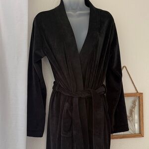 Gilligan & O'Malley Black Tie-Front Lizeth plush Robe with Pockets NWOT