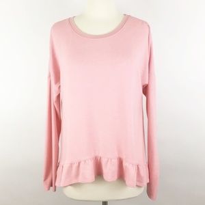 Cute Gilligan O'Malley Drop Shoulder Ruffle Lounge Top. Relax in this soft, warm, roomy lounge top. Pretty ruffle bottom, drop shoulder.