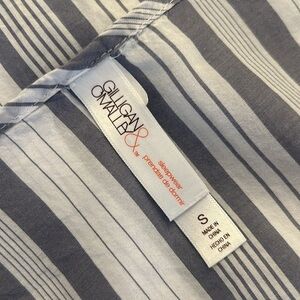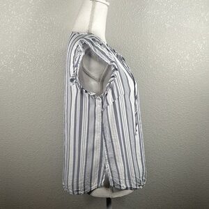 Gilligan & O'Malley Gray & White Striped V-Neck Boho Short Sleeve Top Size Small