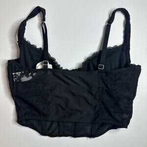 Gilly Hicks Black Lace Corset Tank Top S Boned Sheer Mesh Coquette Goth Romantic