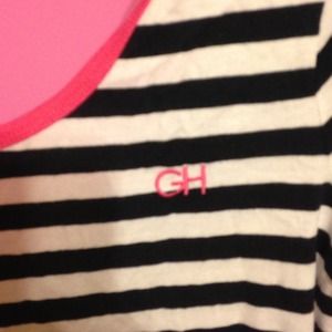 Black and white striped Gilly Hocks short with pink neckline and GH in pink stitching.