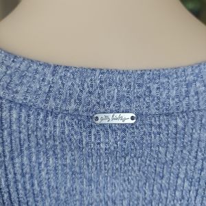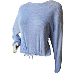 Gilly Hicks Cropped Ribbed Solid Crew Neck Drawstring Pull Over Sweater