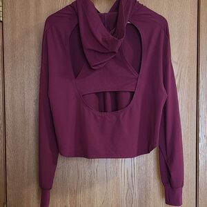 Gilly Hicks GO open back hoodie in the color maroon purple, size small. Features: thumbholes and open cutout back. In very good preloved condition.