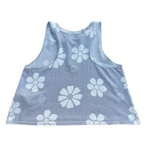Gilly Hicks crop tank top in size large featuring an allover white daisy and smiley face print on a soft heather gray background.