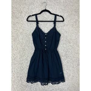 Gilly Hicks Mini Dress Womens Medium Blue V Neck Sleeveless Lace Trim Retro Y2K