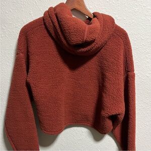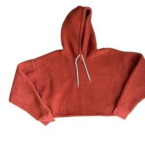 Cozy cropped hoodie. Soft textured fabric. Perfect for casual wear.